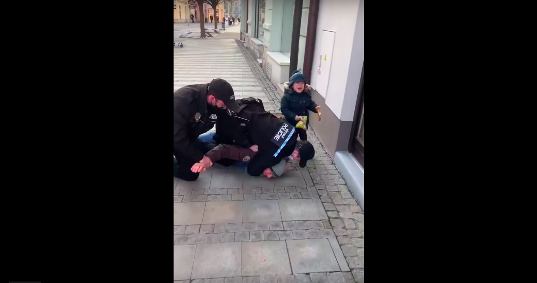 VIDEO: Českí policajti tvrdo spacifikovali muža bez rúška. Zásahu rúškového covid-gestapa sa s plačom prizeral jeho trojročný syn