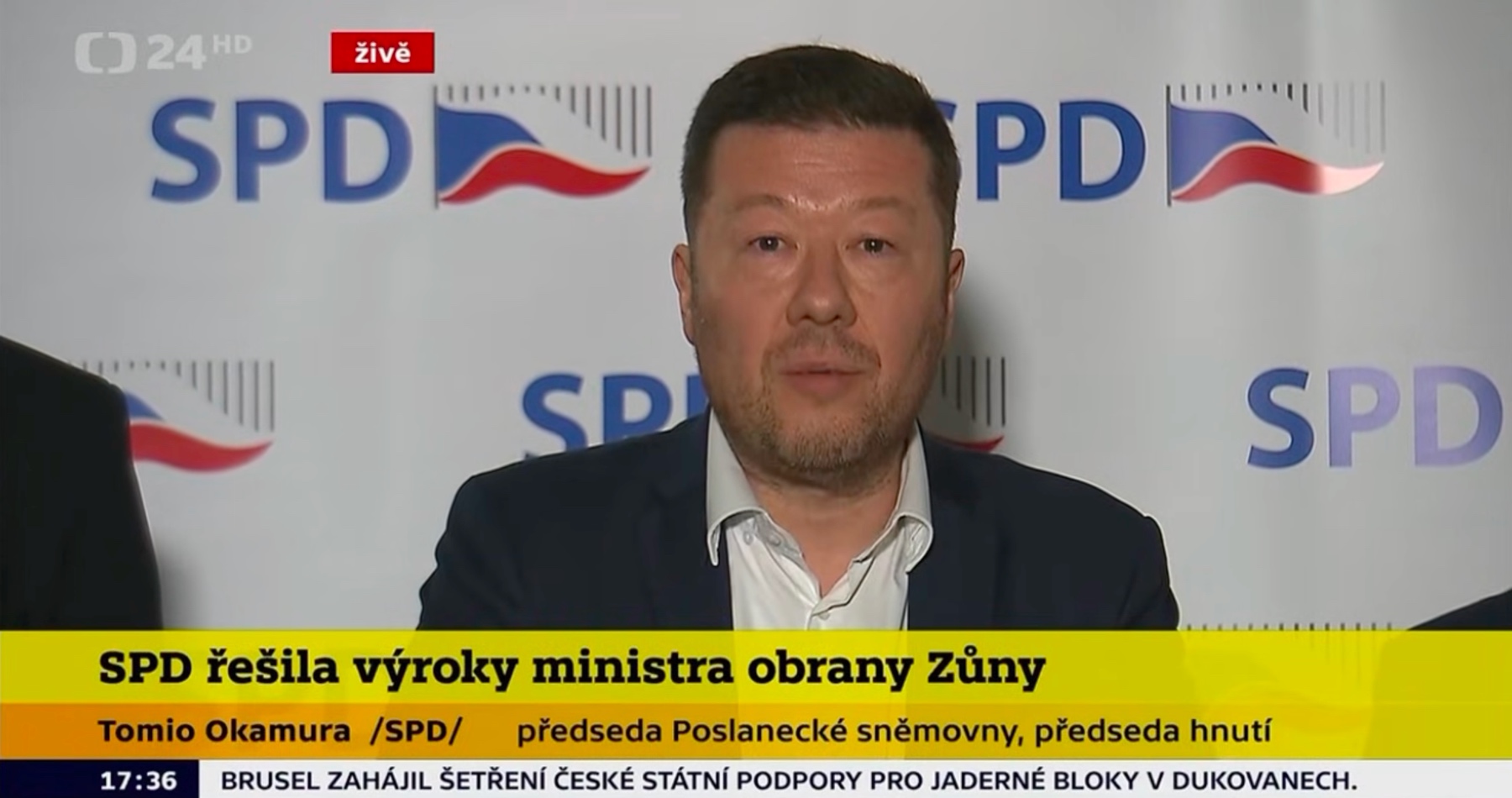 Český minister obrany Jaromír Zůna na Ukrajinu, kam ho pozval jeho ukrajinský náprotivok, nepôjde. Po viac ako trojhodinovom rokovaní poslaneckého klubu SPD to oznámil šéf tejto strany a predseda Poslaneckej snemovne parlamentu ČR Tomio Okamura. TASR o tom informuje s odvolaním sa na portály Novinky.cz a iDNES.cz.