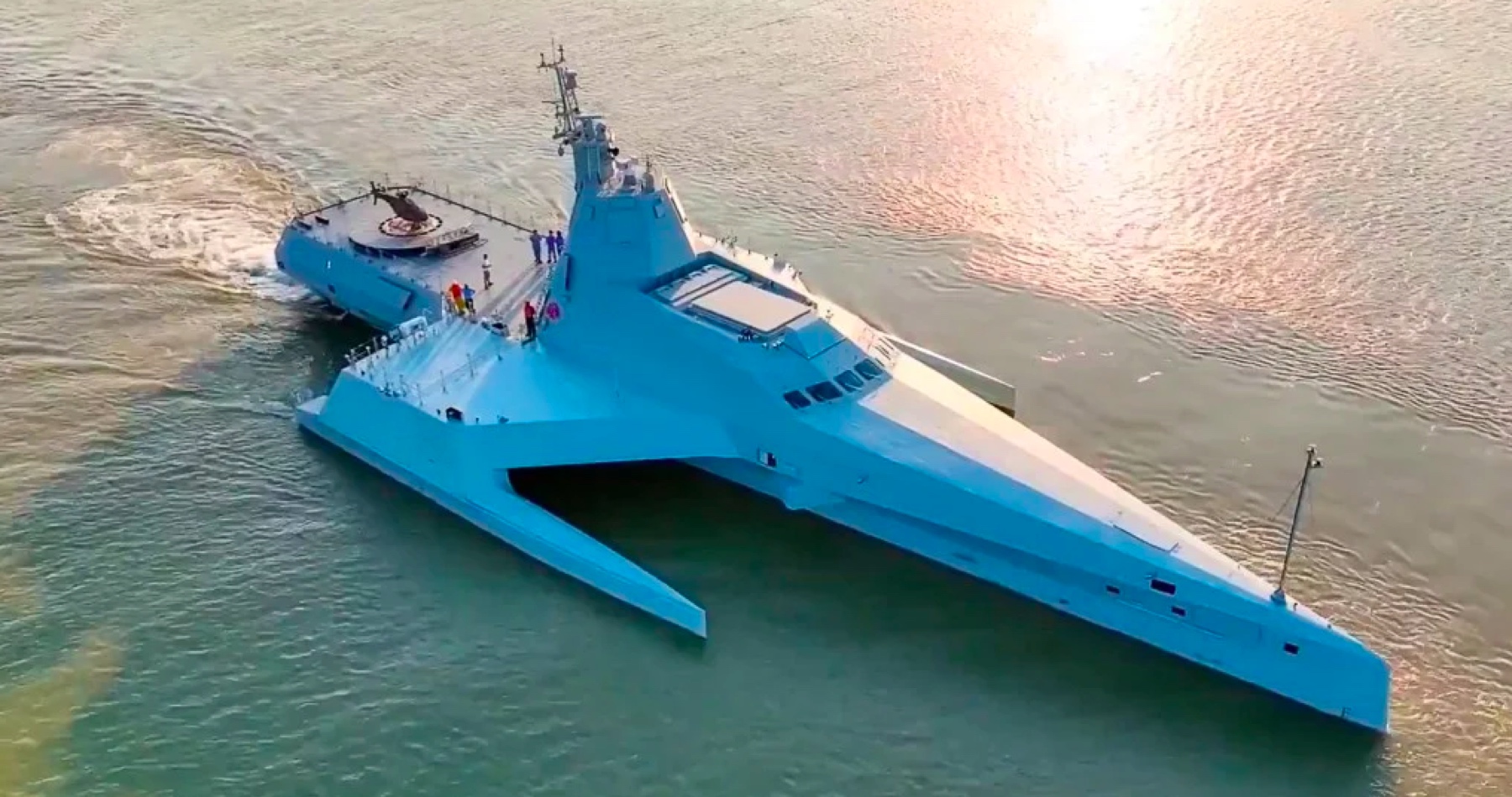 Čínske námorníctvo predstavilo novú neviditeľnú dronovú vojnovú loď s názvom „Killer Whale“. Trimarán môže niesť rôzne protilodné a protivzdušné strely, ale aj vrtuľník. Dokáže prejsť 7 400 km a môže dosiahnuť rýchlosť 74 km/h. Čína dúfa, že „Veľryba zabijak“ sa bude predávať po celom svete.