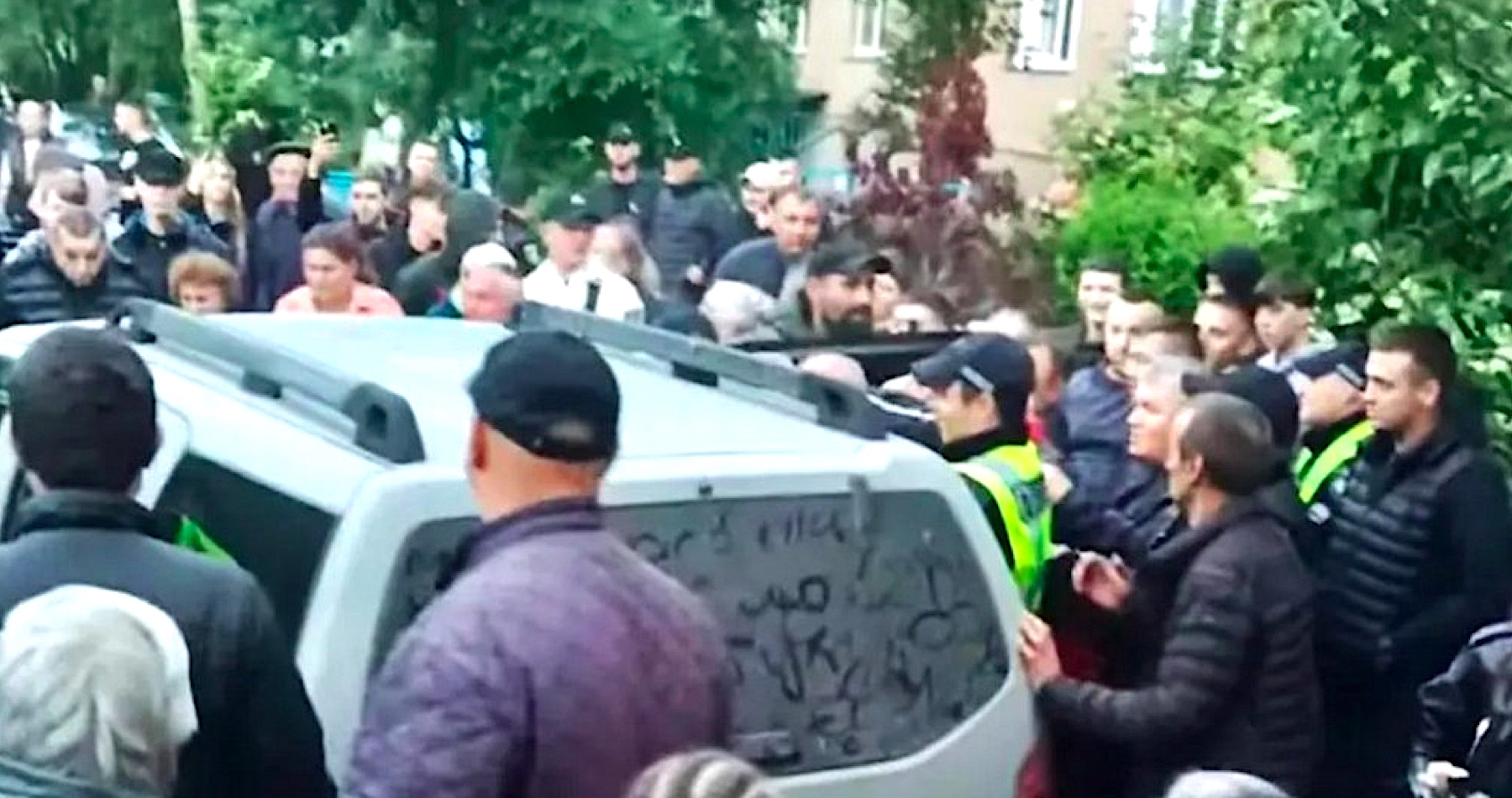 Asi 100 ľudí v západoukrajinskom meste Kamianec-Podiľskyj vo štvrtok obkľúčilo a prepichlo pneumatiky na vozidle využívanom odvodovými komisármi, informovala o tom agentúra DPA, píše TASR.