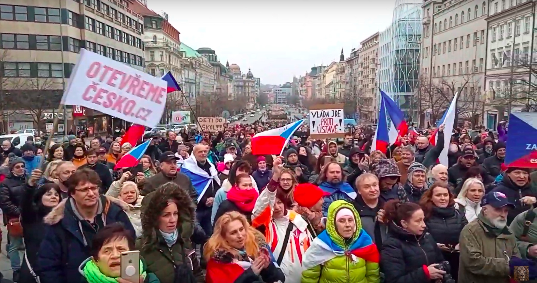 VIDEO: Demonstrace proti opatřením na Václaváku: Vláda jde proti ústavě, hlásaly transparenty