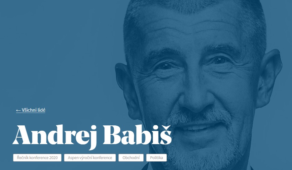 | Andrej Babiš | Předseda vlády | ANO | Bývalý people profil Aspen CE, keynote projev na Aspen konferenci; typický příklad využití sítě a následného maskování vazby. |