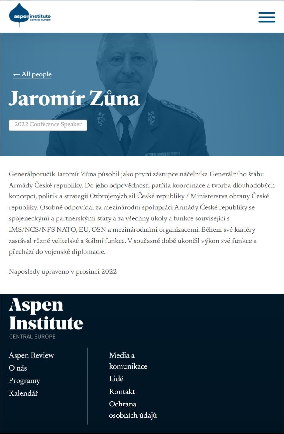 | Jaromír Zůna | Místopředseda vlády, ministr obrany | ANO | Opakovaný řečník na Aspen bezpečnostních konferencích, včetně panelů o NATO a regionální obraně. |