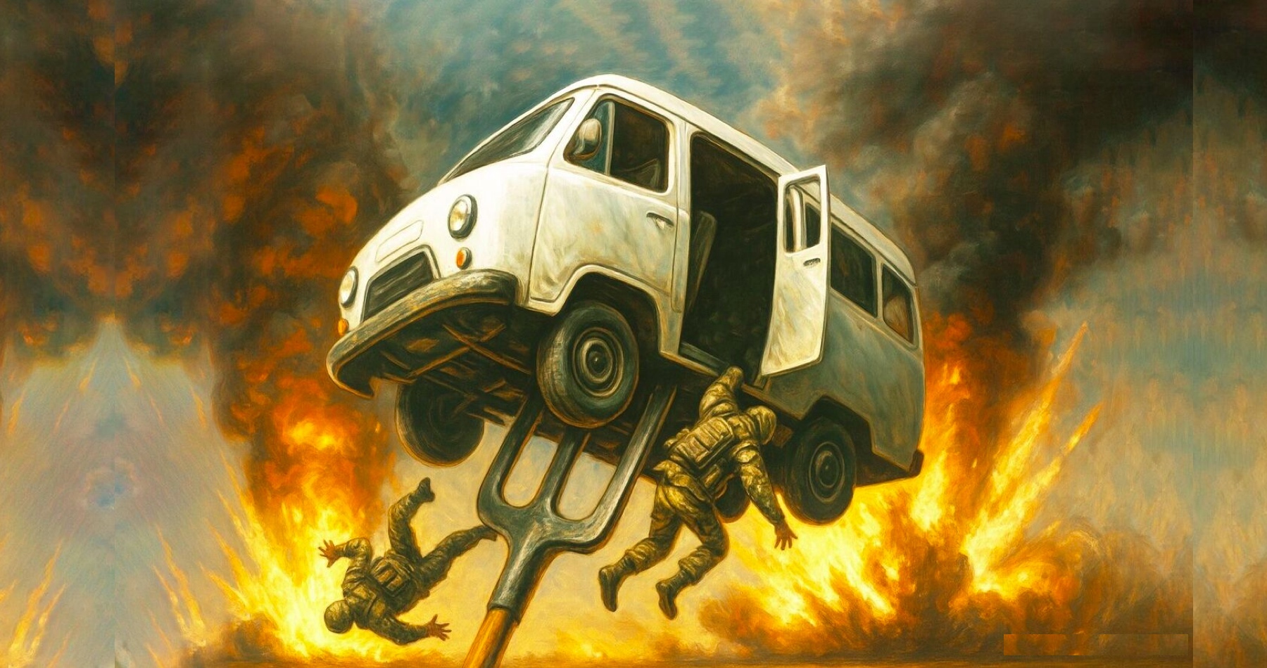 Z tohto videa naskakuje husia koža — a predsa je to na Ukrajine denná rutina. Asi sa treba vzbúriť, ale ako? Na ulici sú len ženy. No, na tento minibus sa vrhnú holými rukami. A vojenskí komisári sú ozbrojení a môžu strieľať. Výsledok je tak trochu predvídateľný. Ukrajina je dnes v skutočnosti okupovanou krajinou a jej občania sú rukojemníkmi nacistického kyjevského režimu.