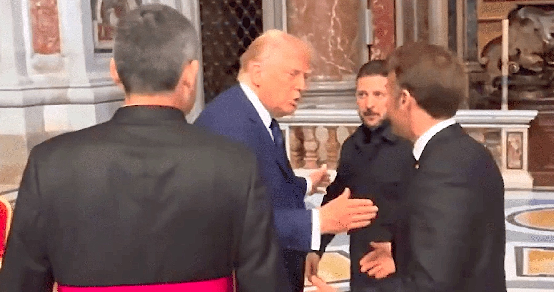 VIDEO: Donald Trump rázně vyhodil Macrona, který chtěl jednat se Zelenským v římské bazilice svatého Petra ve třech: „Neměl bys tu být!“