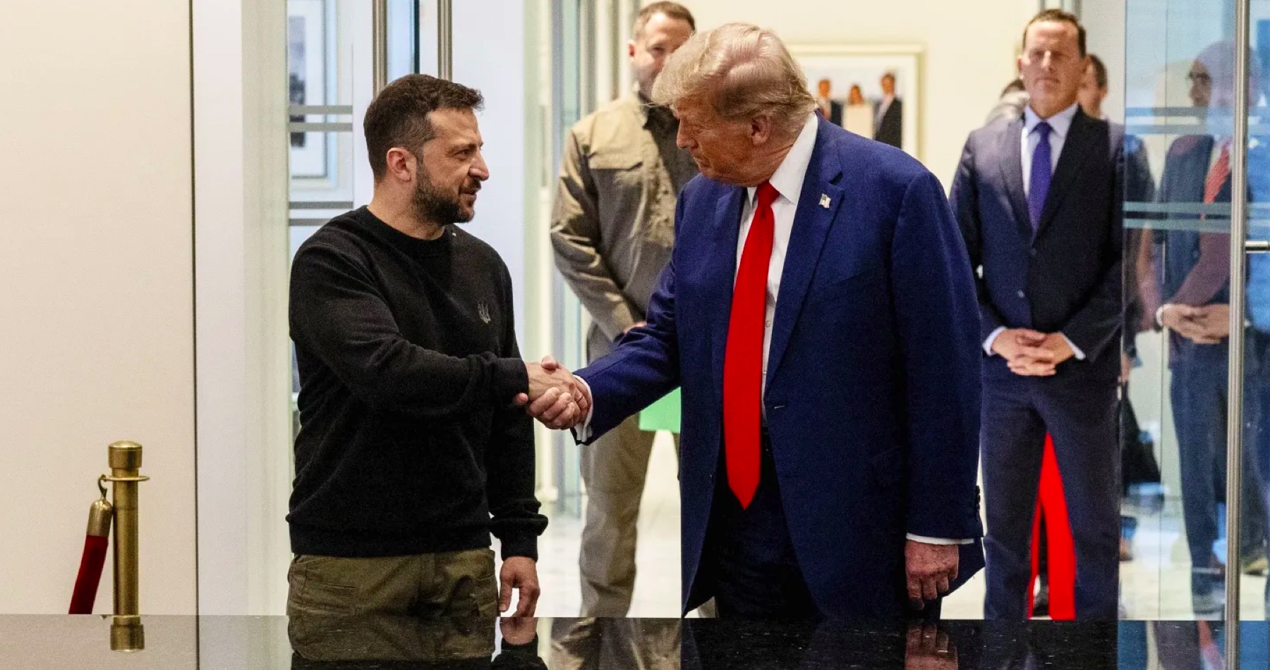 Trump se tento týden při dvou různých příležitostech pustil do Zelenského a Ukrajiny. Ve středečním projevu na volebním mítinku v Severní Karolíně označil Ukrajinu za „zničenou“ a její obyvatele za „mrtvoly“. „Jakákoli dohoda s Ruskem – i ta nejhorší – by byla lepší než to, co máme teď,“ řekl Trump. „Kdyby uzavřeli špatnou dohodu, bylo by to mnohem lepší. Trochu by se vzdali a všichni by žili a každá budova by stála a každý věžák by stál dalších 2 000 let.“ Setkání Trumpa se Zelenským je podle amerického tisku realizováno na základě rad poradců obou prezidentů. Ani Zelenský se prý nechtěl a neplánoval s Trumpem setkat, protože mezi nimi panuje opravdu velká animozita.