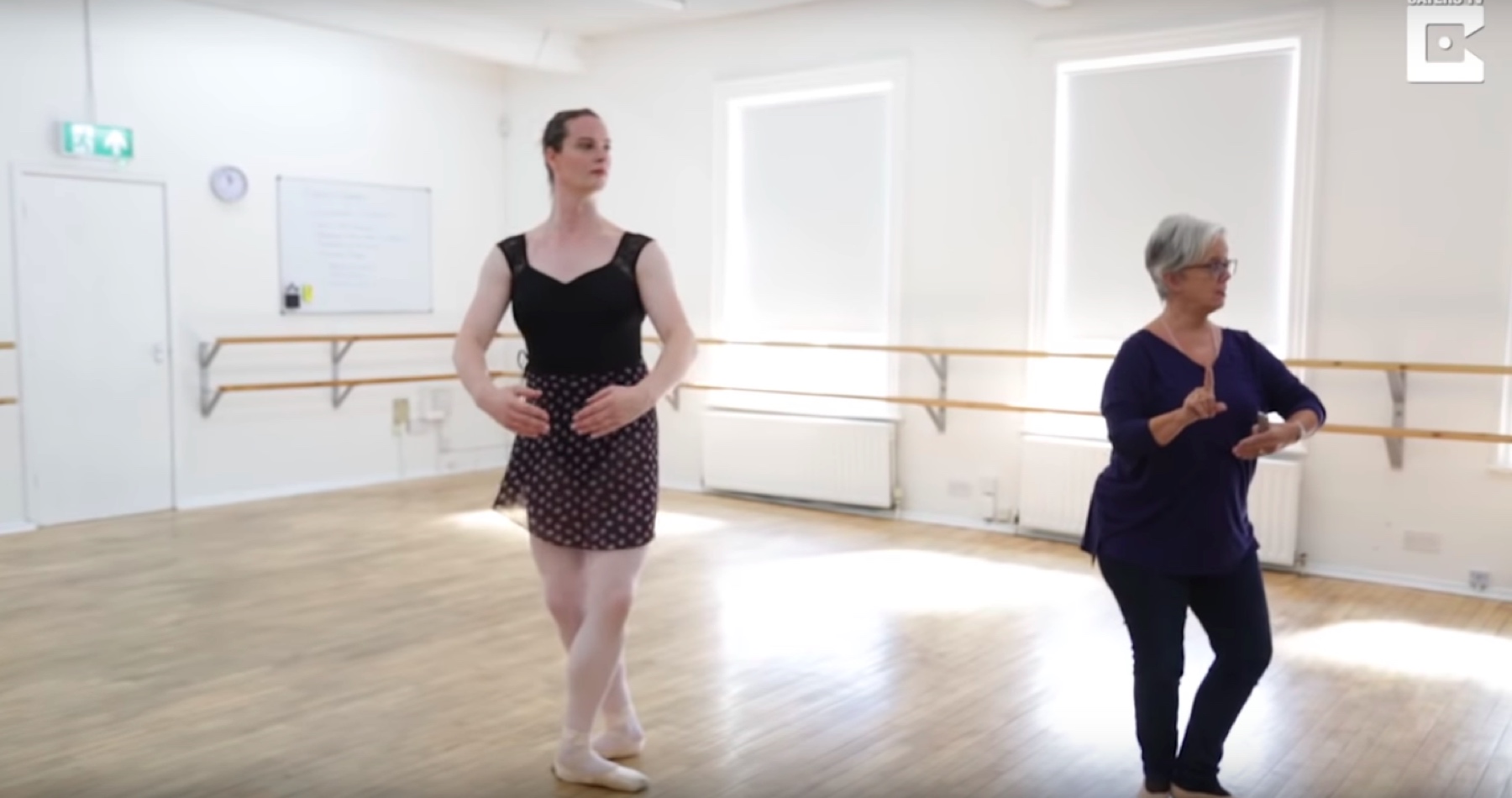 VIDEO: Dvoumetrová postava se pohybuje mezi baletkami. Transžena se stala první transgender balerínou, kterou vzali na prestižní britskou taneční akademii Royal Academy of Dance