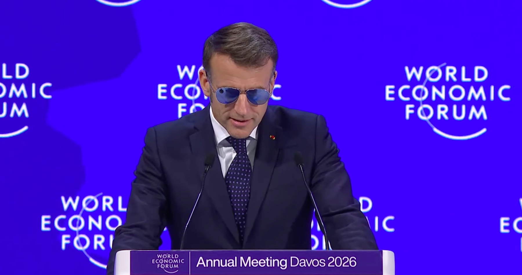 Je podľa Macrona zrejmé, že svet sa z bezpečnostného aj ekonomického hľadiska blíži k obdobiu „nestability a nerovnováhy“. „Je to... odklon smerom k svetu bez pravidiel, kde sa medzinárodné právo pošliapava a kde jediným zákonom, ktorý sa zdá byť dôležitý, je zákon najsilnejšieho,“ povedal Macron v prejave na WEF.