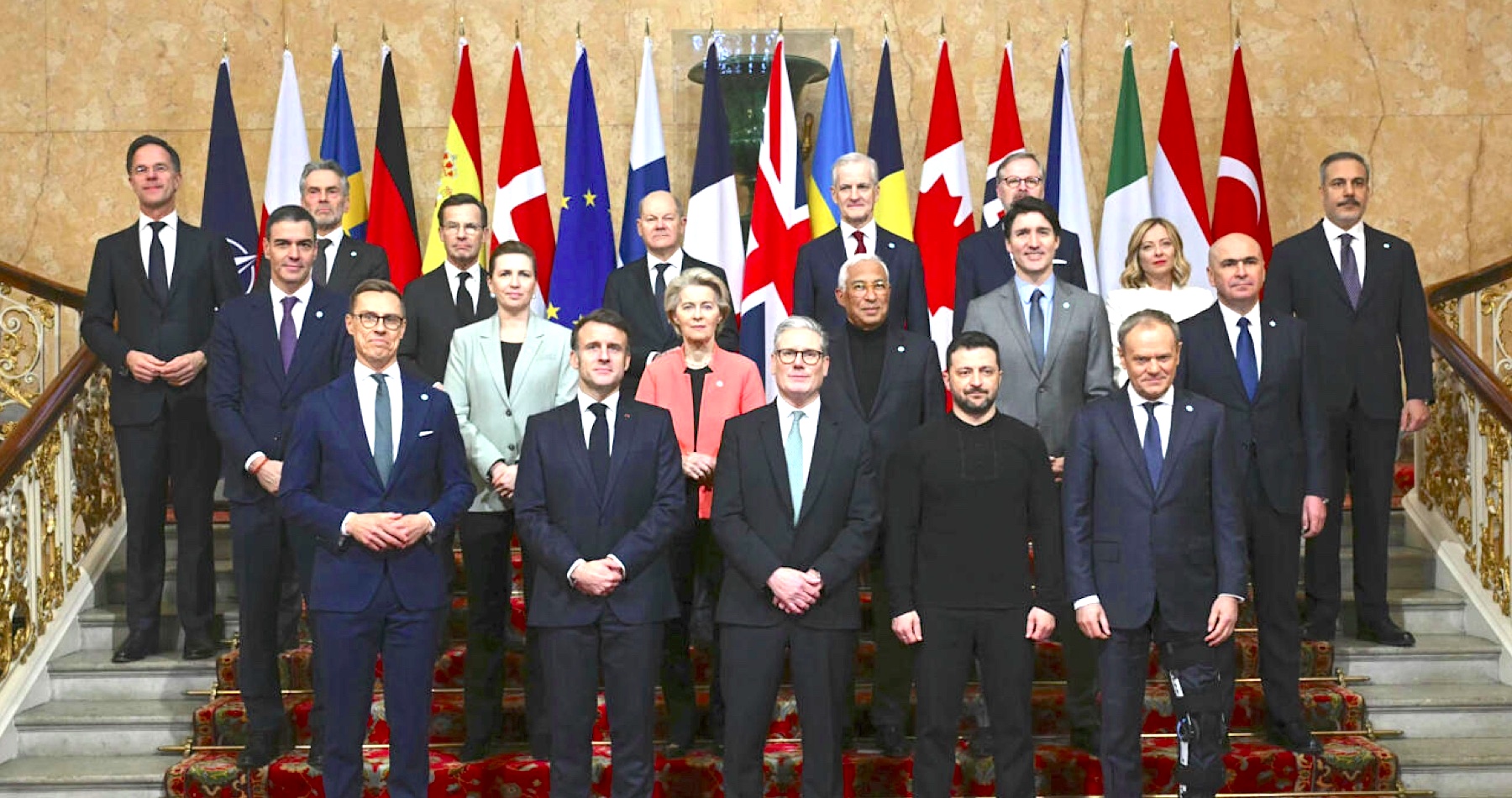 Na nedeľnom zasadnutí, ktoré zorganizoval britský premiér Keir Starmer sa zúčastnilo 19 vysokých predstaviteľov z Francúzska, Nemecka, Talianska, Španielska, Turecka, Dánska, Fínska, Poľska, Česka, Rumunska alebo Kanady, ako aj vedúci predstavitelia NATO a EÚ. Prítomný bol aj ukrajinský prezident Volodymyr Zelenskyj.