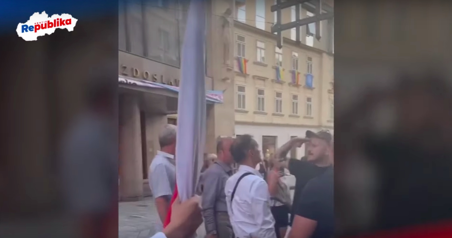 VIDEO: Fanatický prívrženec zabijackej progresívnej ideológie útočil na dôchodcov, ktorí v Bratislave protestovali proti nekultúrnym progresívno-liberálnym zvráteným aktivitám na kultúrnej pôde Divadla P. O. Hviezdoslava. Republika už na neho podala trestné oznámenie