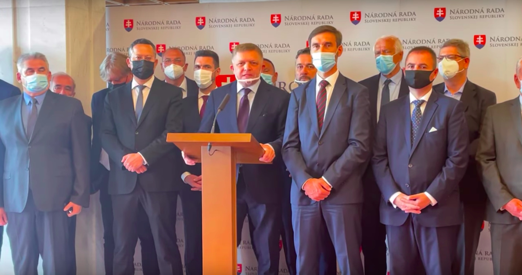 „Dnes oznámime predsedovi národnej rady, že sťahujeme tri návrhy, ktoré mali byť prerokovávané na konci tejto septembrovej schôdze. Súčasne dnes predkladáme návrh na vyslovenie nedôvery ministrovi vnútra Mikulcovi s tým, že o tomto návrhu sa musí rokovať do siedmich dní, čiže schôdza musí byť budúci týždeň. My sme dnes zozbierali 31 podpisov, títo poslanci národnej rady v súlade s Ústavou Slovenskej republiky žiadajú o zvolanie mimoriadnej schôdze a žiadame, aby sme na tejto mimoriadnej schôdzi rokovali o návrhu na vyslovenie nedôvery ministrovi vnútra Mikulcovi,“ uviedol Robert Fico.