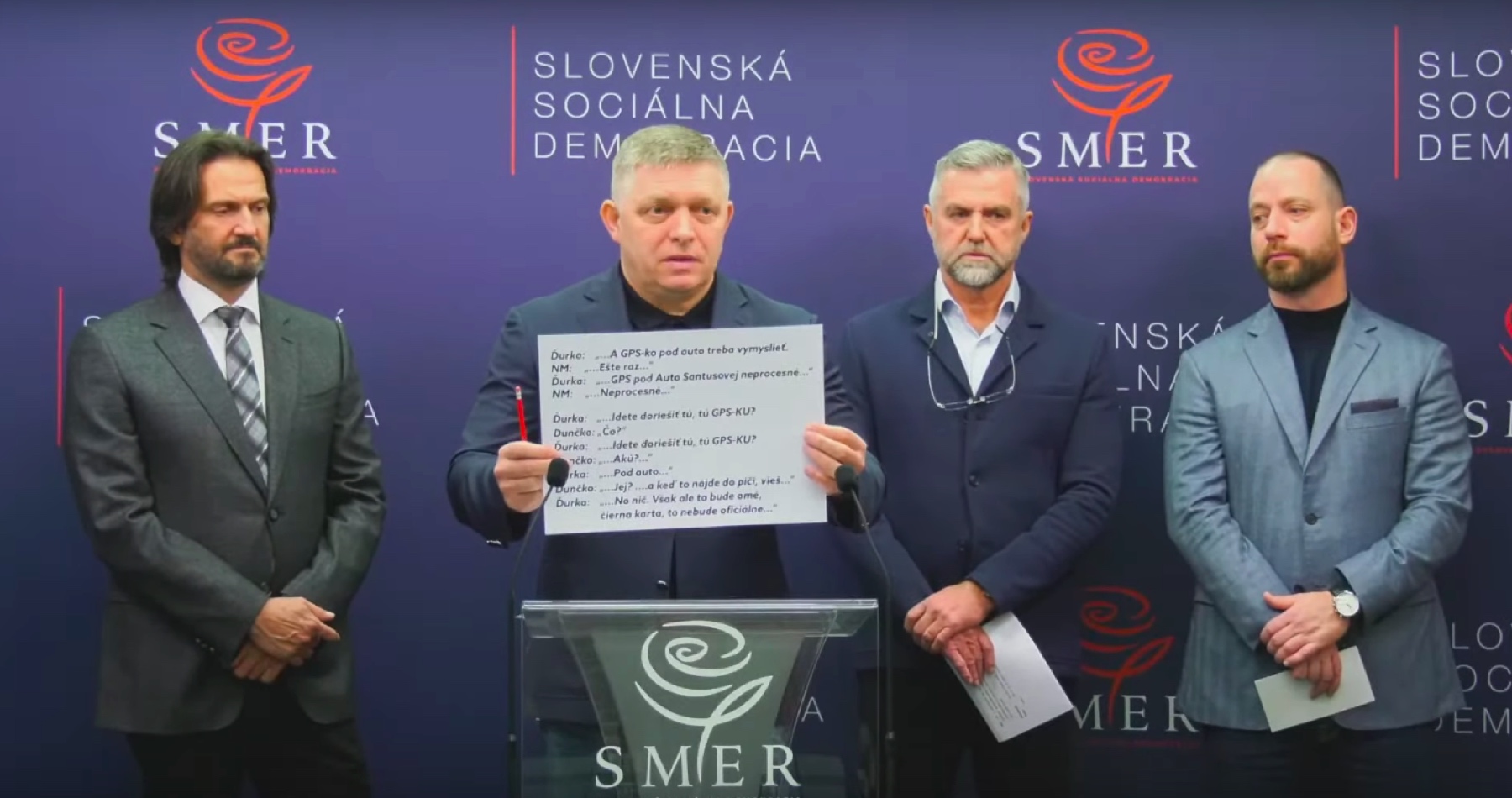 Bývalý premiér Robert Fico na tlačovej konferencii strany Smer-SD za účasti exministra vnútra Roberta Kaliňáka, advokáta Mareka Paru a policajného exprezidenta Tibora Gašpara informovali o ďalšej šokujúcej nahrávke, ktorá potvrdzuje brutálne manipulácie trestných konaní skupinou podozrivých príslušníkov NAKA s asistenciou redaktora a propagandistu Mareka Vagoviča vo verejnoprávnej televízii.
