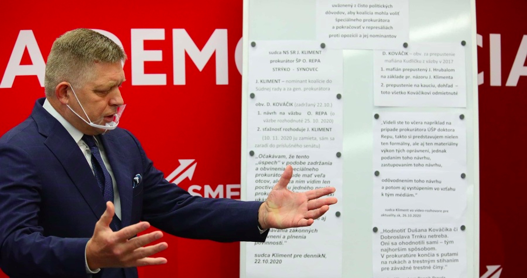Podľa Ficových slov o sťažnosti Dušana Kováčik k vzatiu do väzby rozhodoval senát Najvyššieho súdu (NS) SR, ktorého súčasťou bol sudca Juraj Kliment. „Kliment bol nominant OĽANO na pozíciu generálneho prokurátora a koalíciou bol nominovaný do Súdnej rady,“ zdôraznil.