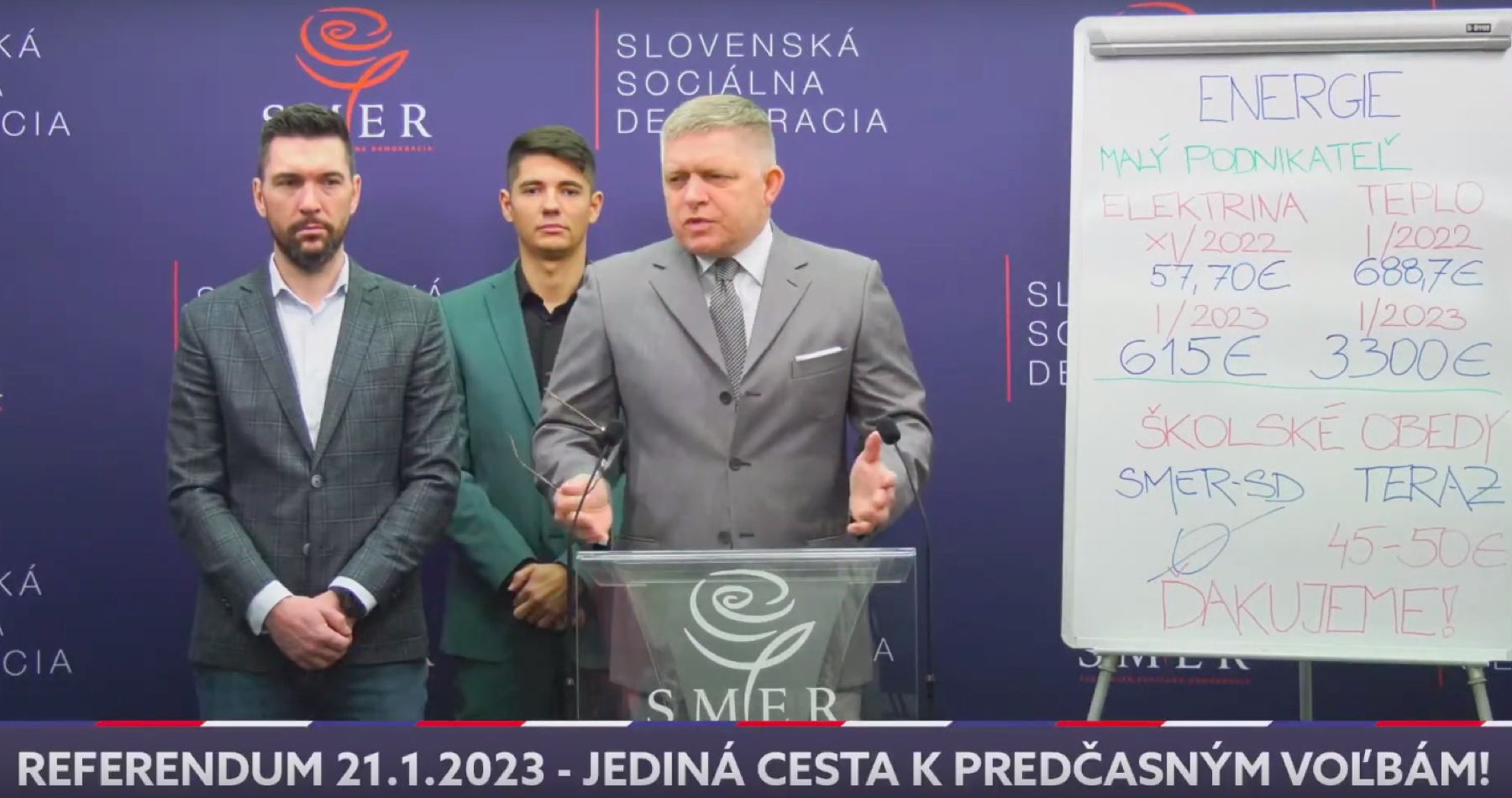 VIDEO: Fico prezentoval závratné sumy na faktúrach za energie v januári 2023, s ktorými Hegerova vláda nerobí absolútne nič a jedinou jej starosťou je „chrániť si vlastné zadky“. Bývalý premiér v rámci východiska z tejto situácie vyzval občanov zúčastniť sa referenda o predčasných voľbách