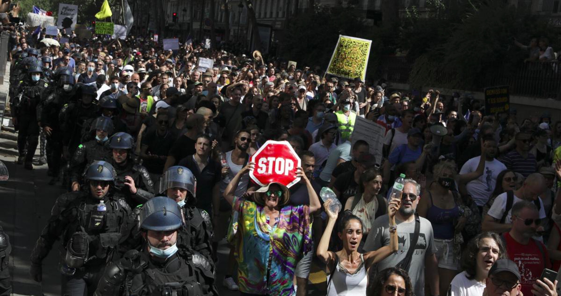 Tisíce ľudí v sobotu vyšli do ulíc viacerých francúzskych miest, aby vyjadrili nespokojnosť s tzv. covidpasmi, ktoré sú vo Francúzsku povinné pri vstupe do väčšiny prevádzok, informovala agentúra AP.