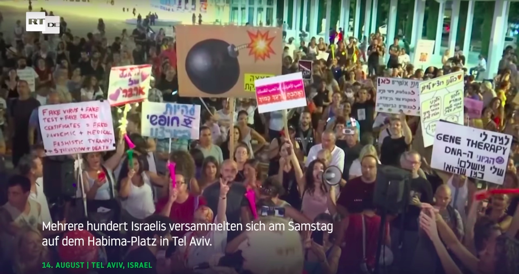 Stovky ľudí vyšli do ulíc v Tel Avive proti tzv. „posilňovaciemu očkovaniu“. Dôvod: Krajina zažíva masívnu vlnu infekcií a pravdepodobne skôr kvôli, než napriek očkovaniu, píše report24.news.