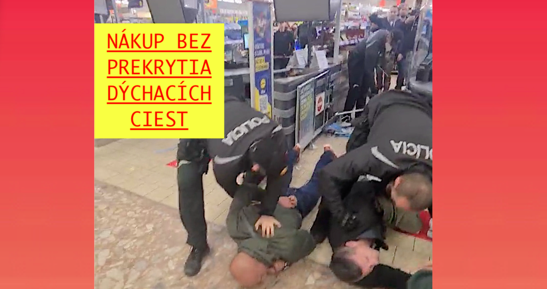 Polícia zbila bezúhonných občanov, pretože pri nákupe nemali prekryté dýchacie cesty. Ako keby to bola ich povinnosť. Pritom nie je!