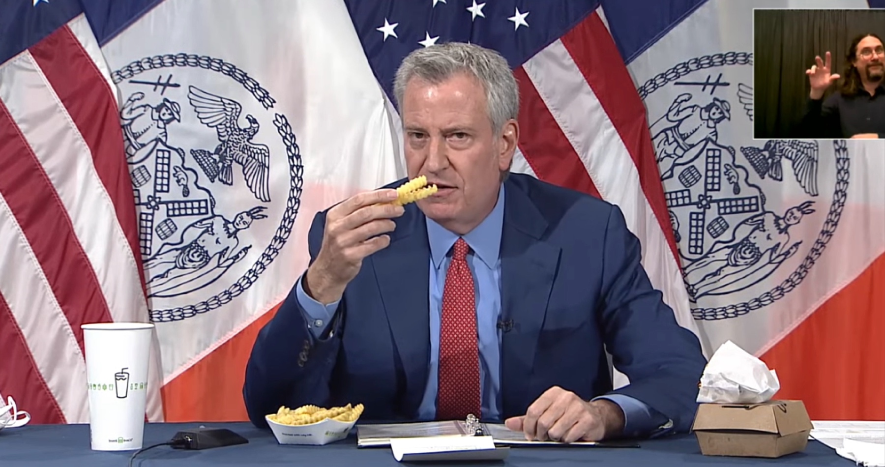 Starosta New Yorku se snaží nalákat lidi na očkování proti covidu tím, že k tomu dostanou hranolky a burger zdarma.