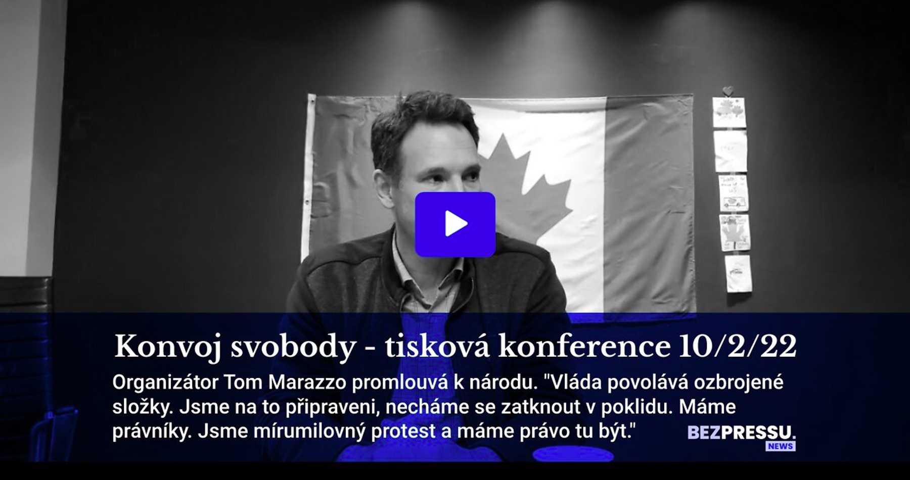 Organizátor kanadaských protestov Tom Marazzo na tlačovej konferencii dňa 10. februára 2022: