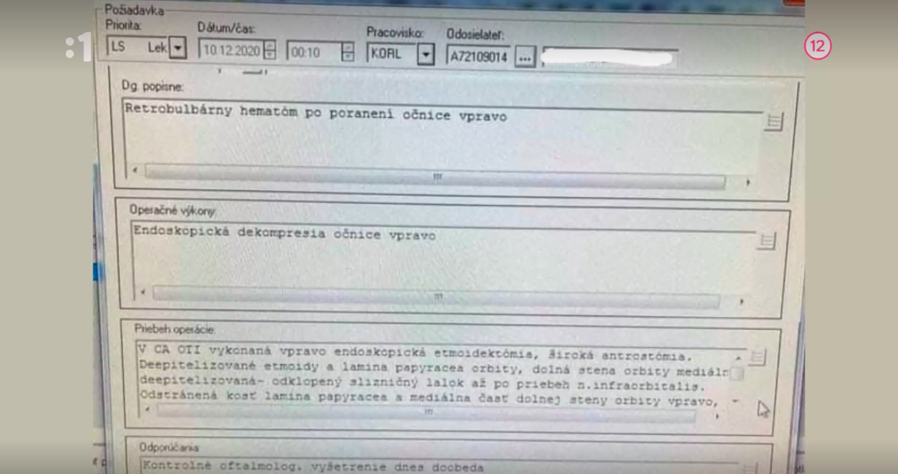 “Lekárske záznamy sme ukázali nezávislému traumatológovi. Ten nám povedal, že ide o typický úraz po bitke, po dobre mierenom údere do oka. Podľa neho existuje len malé percento, že by poranenie vzniklo pri páde,” informovala reportérka RTVS.