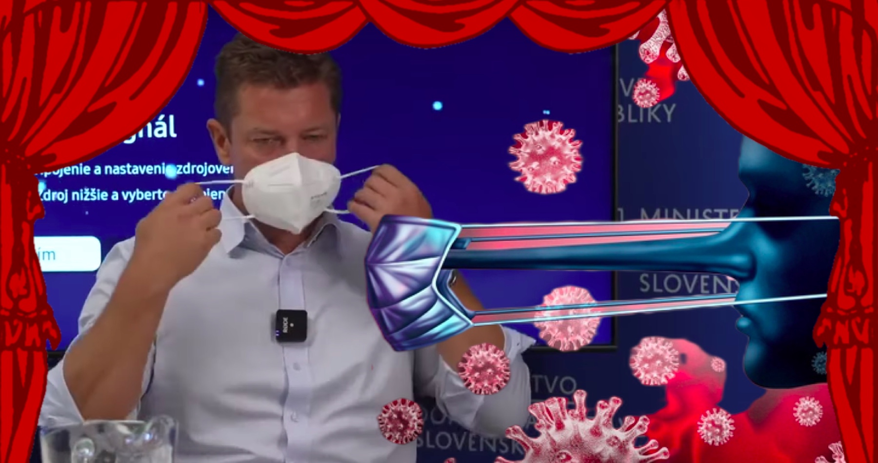 Zákulisie debaty odhalilo pravú tvár mediálnej hystérie okolo infekcie Covid-19, keď si minister dopravy a výstavby SR Andrej Doležal (Sme rodina) nasadil respirátor proti smrteľnému vírusu až tesne pred odštartovaním debaty.