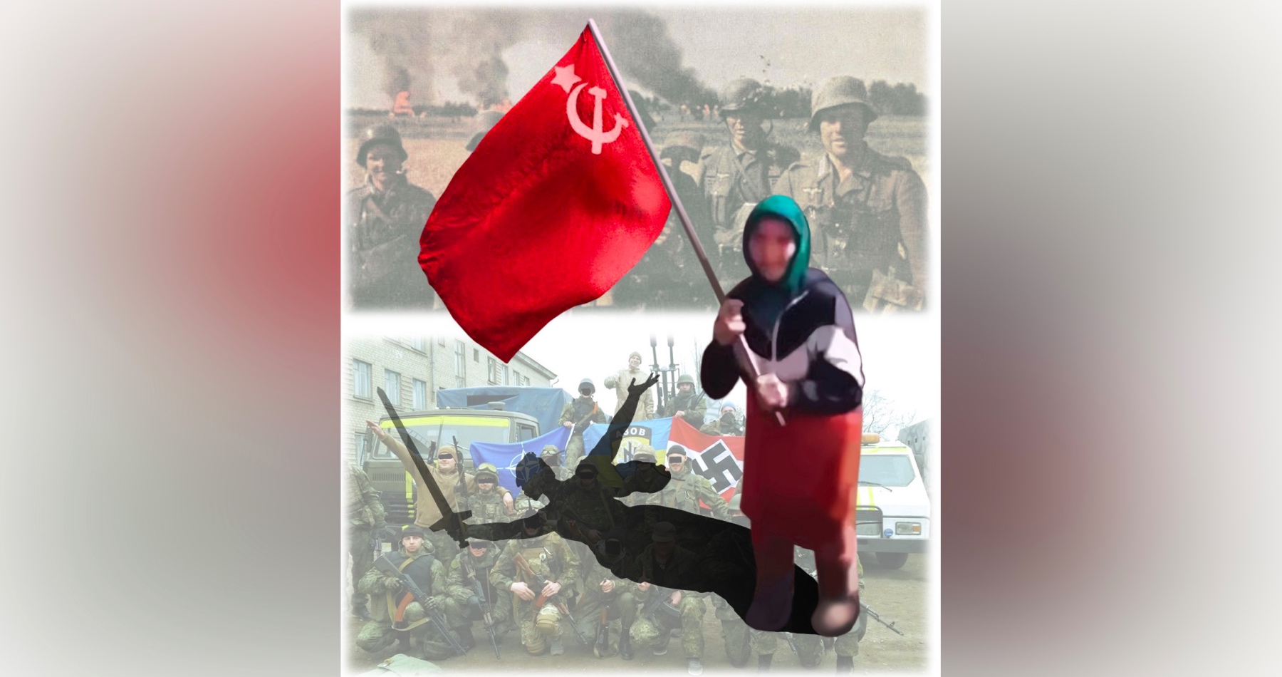 Voják VSU mezitím hodil rudý prapor na zem a začal po něm šlapat. Babuška mu řekla, že za ten prapor její rodiče bojovali ve II. sv. válce a on teď po vlajce šlape. Voják jí na to opověděl, že Rusové přišli do jeho domu a on s ní mluví rusky proto, že teď bojuje za svoji zemi. Žena si uvědomila, že se spletla, že přivítala nacisty a chtěla po nich, aby jí prapor vrátili. Ukrajinští vojáci to ale odmítli a rudou vlajku jí sebrali. Na internetu se objevilo video, které obsahuje i jejího manžela, starého muže, který měl za pasem v kalhotách zastrčený modlitební kříž a voják VSU se ho snažil přesvědčit, aby provolával slávu Putinovi a ruským vojskům na Ukrajině. Viz. video níže.