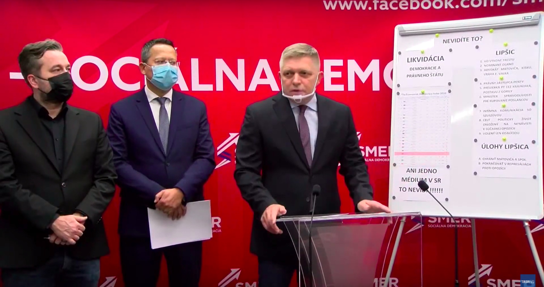 "Likvidácia právneho štátu neprebieha len tak, že my ju komentujeme na našich tlačových konferenciách, ale prebieha tak, že si ju všíma celý svet," hovorí a poukázal na index časopisu The Economist.