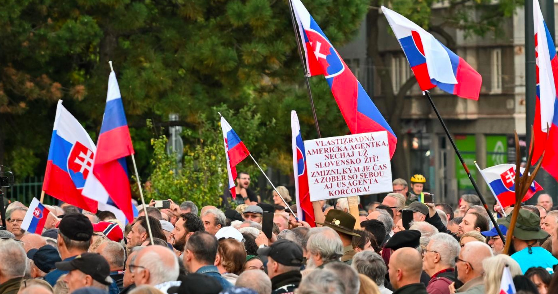 Na Hodžovom námestí v Bratislave sa v pondelok podvečer konal občiansky protest proti tomu, ako prezidentka Zuzana Čaputová brzdí vymenovanie novej vlády, zneužíva svoju moc, prekračuje hranice svojich právomocí a v priamom prenose likviduje parlamentnú demokraciu na Slovensku.