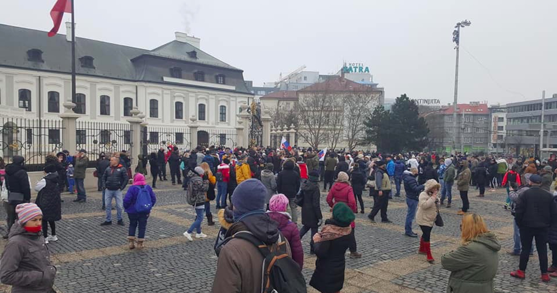 Na protestnom pochode proti vláde Igora Matoviča sa v sobotu 20. februára zúčastnilo niekoľko desiatok ľudí, po uliciach kráčali so slovenskými vlajkami a spievali hymnu.