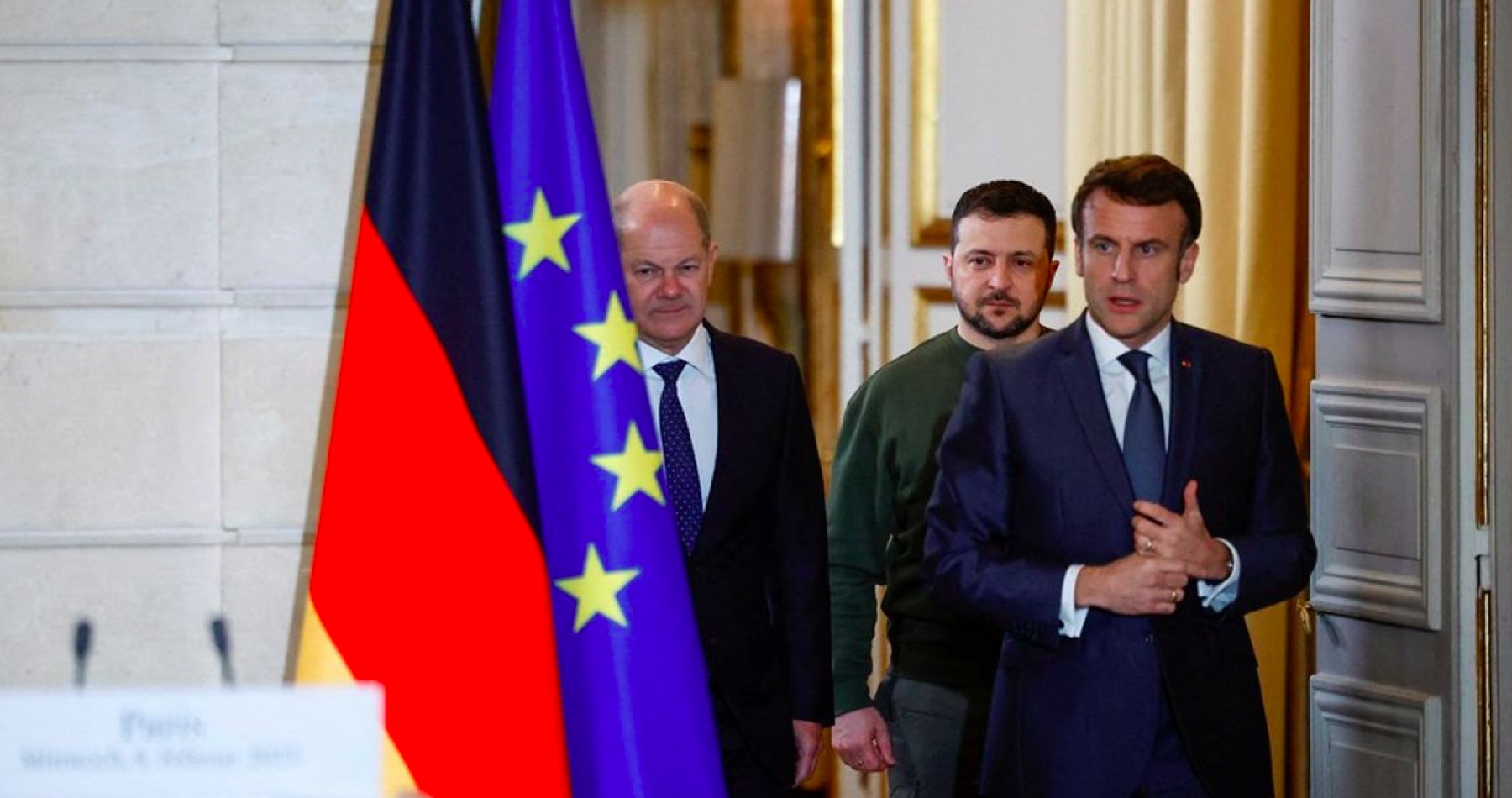 Zelenskyj pred večerou s Macronom a Scholzom vyzval Francúzsko a Nemecko, aby Ukrajine čo najrýchlejšie poskytli bojové lietadlá a ťažké zbrane. Dodal, že kľúčovým faktorom v boji proti ruskej invázii je práve čas.