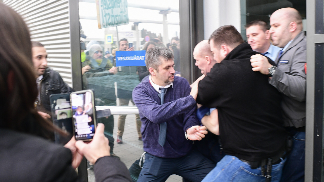 VIDEO: Maďarská verejnoprávna televízia vykázala z budovy opozičných poslancov a zažalovala ich