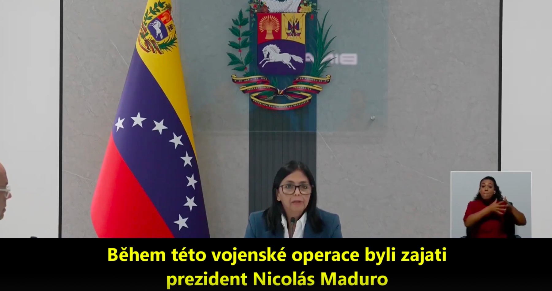 Jak dobře ví venezuelský lid i mezinárodní společenství, dnes v časných ranních hodinách, přesně v 1:58, zahájila vláda Spojených států bezprecedentní vojenskou agresi proti Bolívarovské republice Venezuela. Jedná se o strašlivou skvrnu na vývoji bilaterálních vztahů. Během této vojenské operace byli zajati prezident Nicolás Maduro a první dáma, první bojovnice, Cilia Flores. Již jsme varovali, že pod falešnými záminkami a falešnými předtexty probíhá agrese, že masky spadly a že jediným cílem je změna režimu ve Venezuele, která by navíc umožnila zmocnění se našich energetických zdrojů, našich nerostných surovin, našich přírodních zdrojů. To je skutečný cíl a svět a mezinárodní společenství by o tom měly vědět.