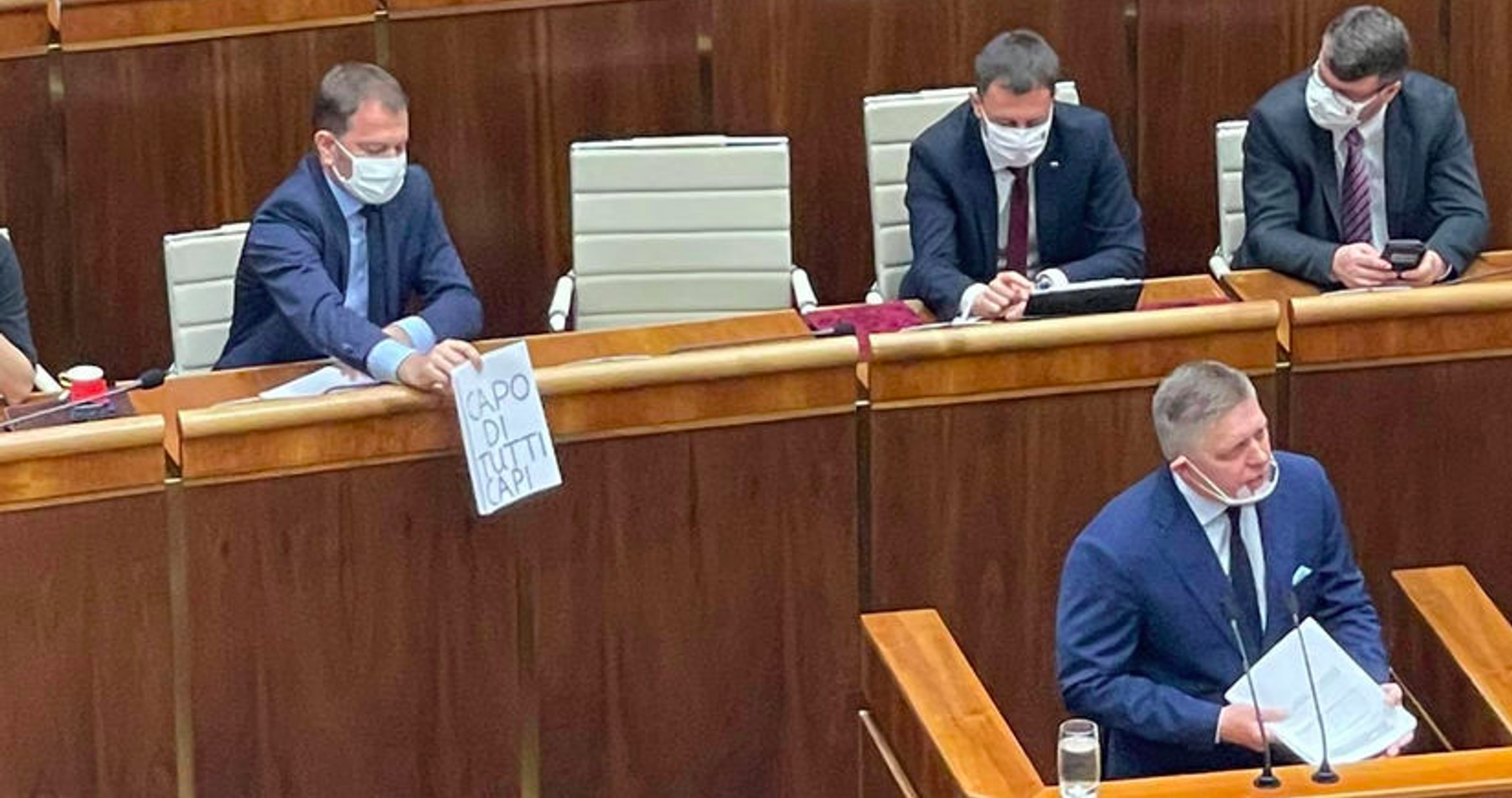 Šéf Smeru Robert Fico končil svoju úvodnú reč, počas ktorej odôvodňoval, prečo má byť odvolaný minister vnútra Roman Mikulec. Minister financií Igor Matovič si dlhší čas niečo písal na papier, zdalo sa, že sú to poznámky k Ficovej reči. Bol to však nápis – odkaz s textom CAPO DI TUTTI CAPI, čo je v preklade „šéf všetkých šéfov“ a zvyčajne sa to spája s mafiou. Fico na to nereagoval, ale Kollár áno a Matovič po jeho karhajúcich slovách papier odložil.