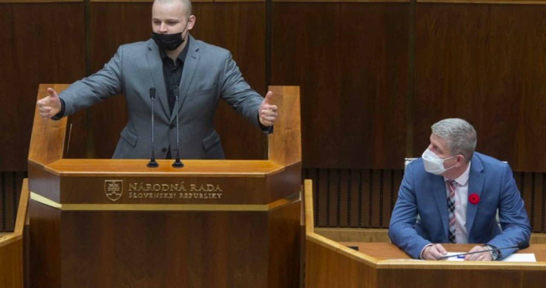 VIDEO: Mazurek oslovil Lengvarského ako pána ministra Mengeleho, odmietol si nasadiť respirátor a blokoval rečnícky pult