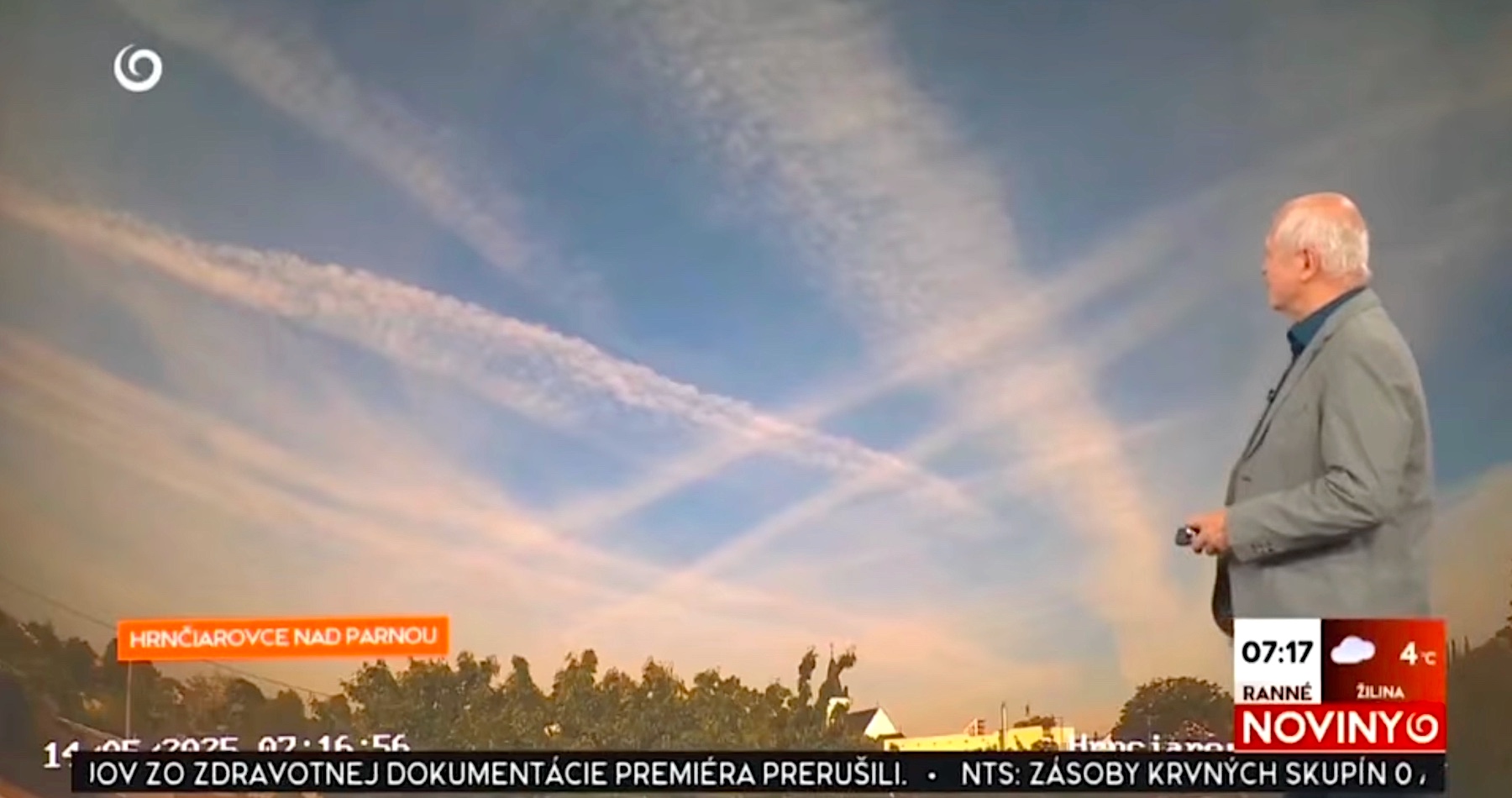 VIDEO: Meteorológ Peter Jurčovič v rannom vysielaní televízie JOJ poukázal na chemické stopy po lietadlách: „To nie je normálny oblak, ale chemtrails,“ vysvetlil stručne