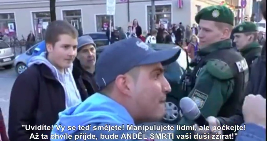 „Áno chceme! Chceme aby to tak bolo na celom svete! Bude to islamský svet! Allahu Akbar! Uvidíte! Vy sa teraz smejete, ale počkajte! Až tá chvíľa príde, bude anjel smrti vaše duše zožierať! Budete mať strach!“ odpovedá moslimský migrant Nemcom.