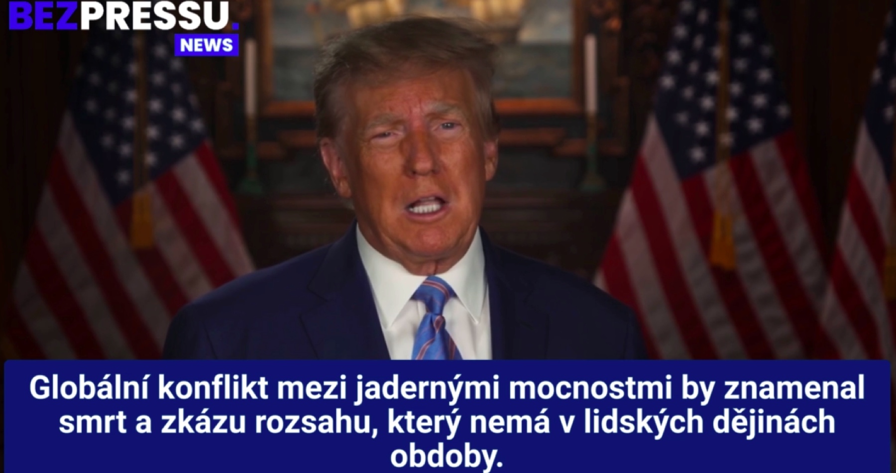 VIDEO: „Náš zahranično-politický establišment sa stále snaží vtiahnuť svet do konfliktu s Ruskom na základe klamstva, že predstavuje našu najväčšiu hrozbu. Globálny konflikt medzi jadrovými mocnosťami by znamenal smrť a skazu rozsahu, ktorý nemá v ľudských dejinách obdobu,“ vyhlásil Trump a vyzval na prehodnotenie účelu NATO