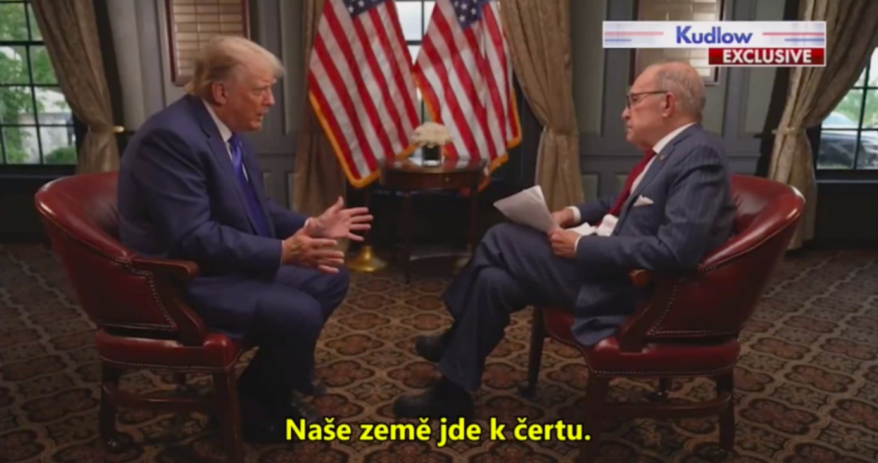 "Naša krajina ide do pekla a my viac nebudeme ten veľký chlapec," tvrdil Trump a argumentoval: "Máme moc, ale tá slabne. V skutočnosti slabne, pokiaľ ide o našu menu."