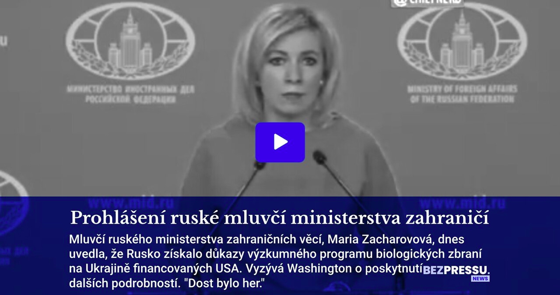 VIDEO: „Našli sme vaše vlastné výrobky. Našli sme váš biologický materiál, ktorý bol vyvinutý na vojenské účely,“ vyhlásila hovorkyňa ruského rezortu diplomacie v reakcii na vývoj a výrobu biologických zbraní na Ukrajine financovaných USA