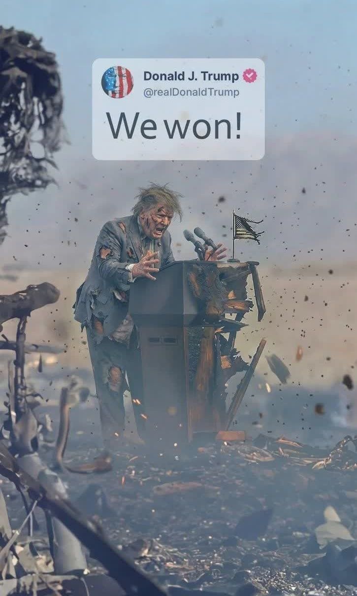 Donald Trump sice oznámil vítězství v Íránu, ve skutečnosti jeho vítězství nejlépe sumarizuje AI meme níže.