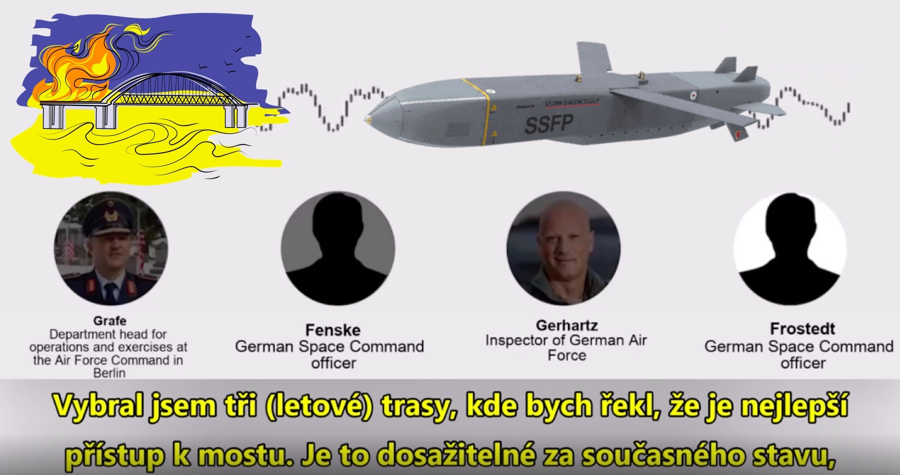 VIDEO: Německá armáda plánovala údery na Krymský most, ruské základny a muniční sklady. Na uniklé nahrávce špičky Luftwaffe plánovaly, jak řídit přes německou armádní družici rakety Taurus proti ruským cílům skrze středisko výrobce raket, aby z útoku nemohla být obviňována německá armáda a vláda v Berlíně