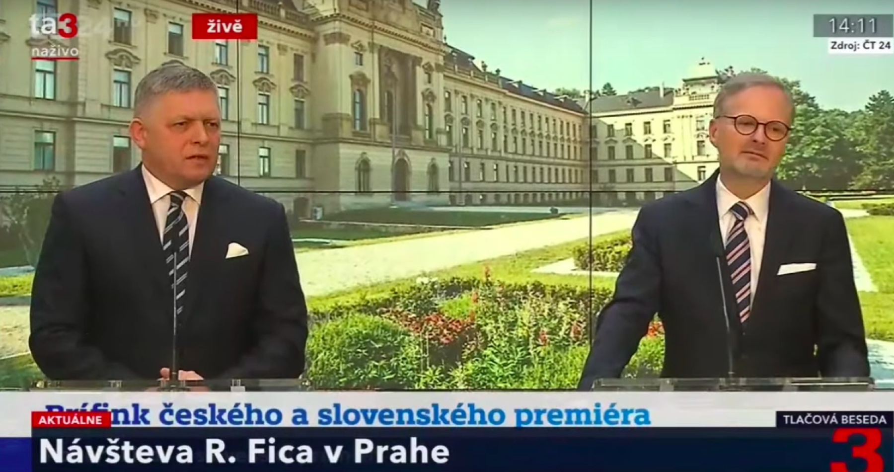 Fico sa v Čechách stretol so svojím náprotivkom, českým premiérom, Petrom Fialom. Fico priložil k svojim slovám aj video. Na ňom odpovedá na otázky novinárov na tlačovom brífingu premiérov po ich spoločnom stretnutí.