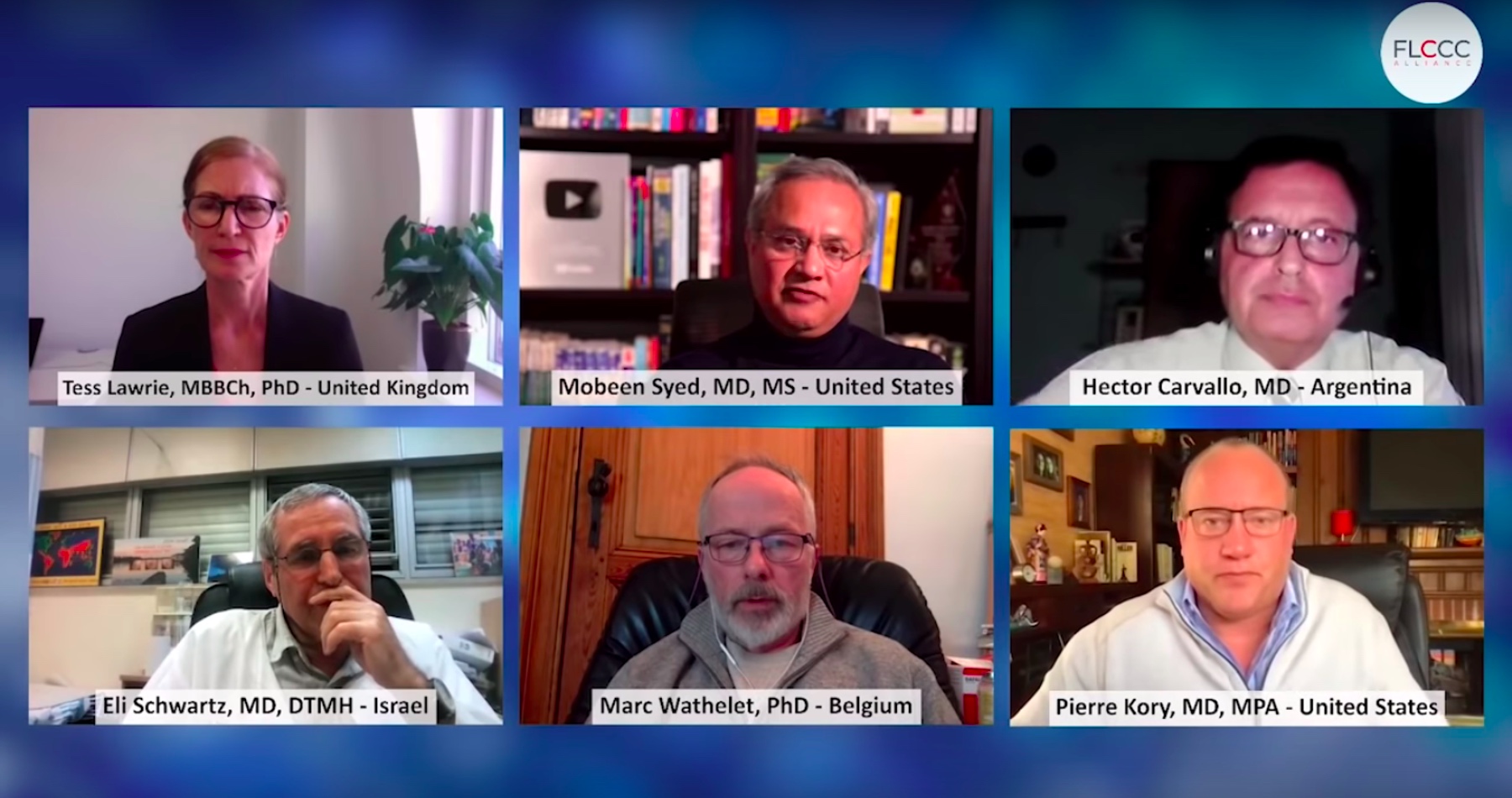 Mezi diskutujícími byli americký lékař Pierre Kory z aliance FLCCC (Front Line Critical Care), izraelský profesor Eli Schwartz z nemocnice Sheba, anglická lékařka Tess Lawrieová, profesor Hector Carvallo z argentinské univerzity Adolfa Ibaneze a belgický molekulární biolog Marc Wathelet.