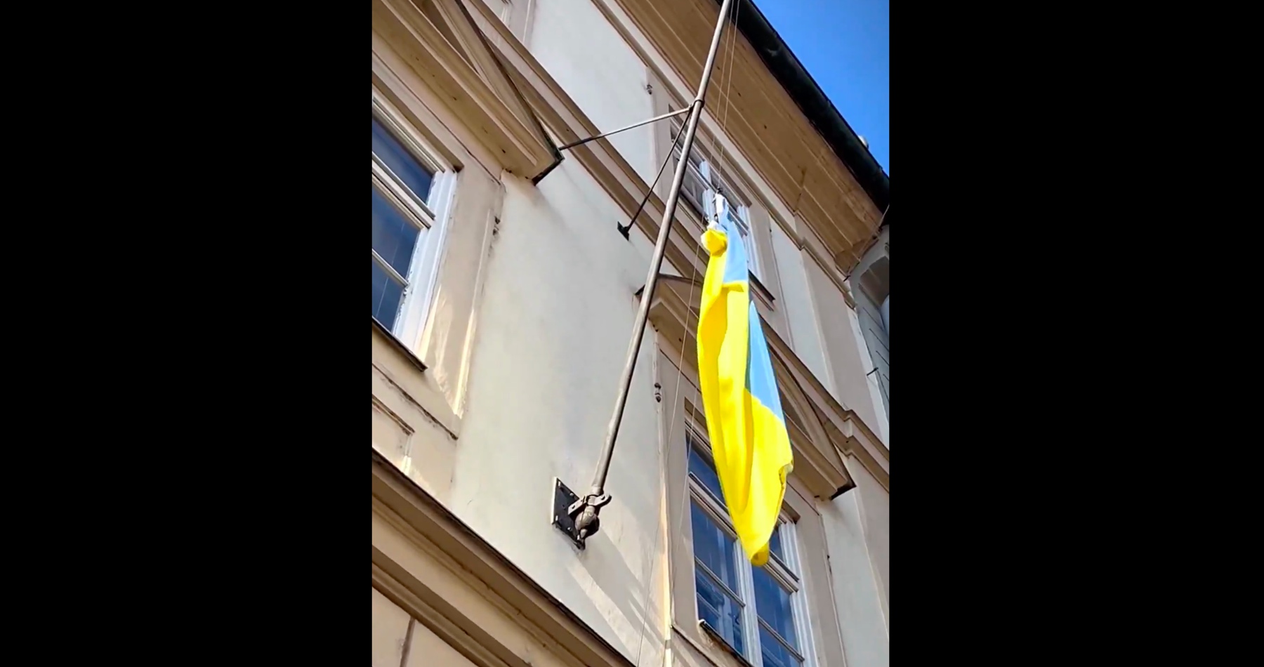 Ukrajinská vlajka je ve Sněmovně zpět a visí z oken našeho poslaneckého klubu. ???????????????? pic.twitter.com/H2lSLJI72o