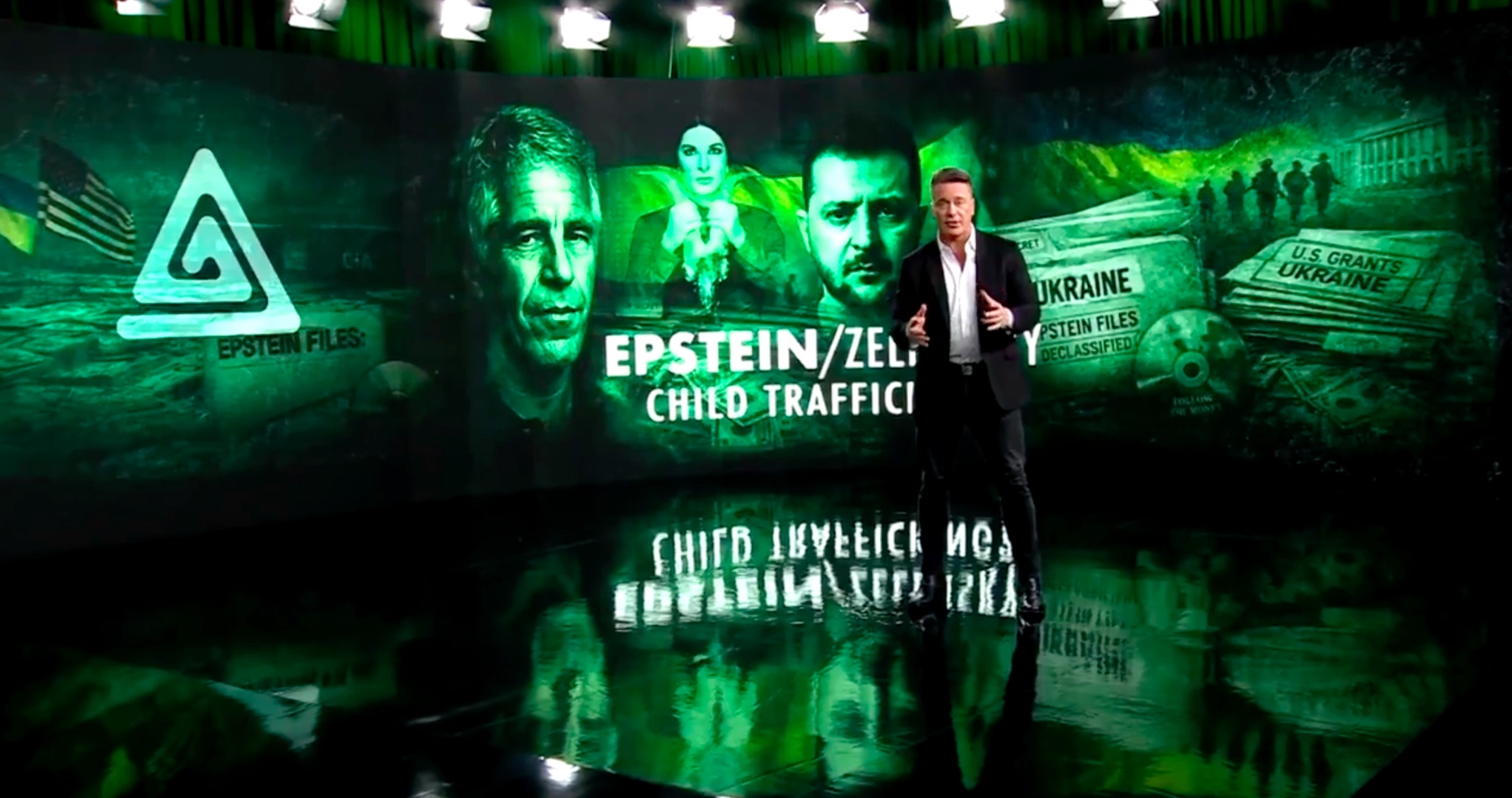 Americký televízny moderátor, investigatívny novinár Benn Swann vo svojom videu, zverejnenom 5. februára 2026, poukázal ms spojenie medzi organizátorom satanistickej pedofilnej siete Jeffreym Epsteinom a ukrajinským prezidentom Volodymyrom Zelenským na Ukrajine v rámci aféry Pizzagate. Nielenže sa sa obaja zaplietli do obchodovania s ľuďmi v tejto krajine, ale v spojení so Zelenským bola aj srbská okultná umelkyňa Marina Abramovič, známa ako satanistka pod prezývkou „Spirit Cooking“ (večera varenie ducha), ktorá je jednou z ústredných postáv pedofilnej aféry Pizzagate.