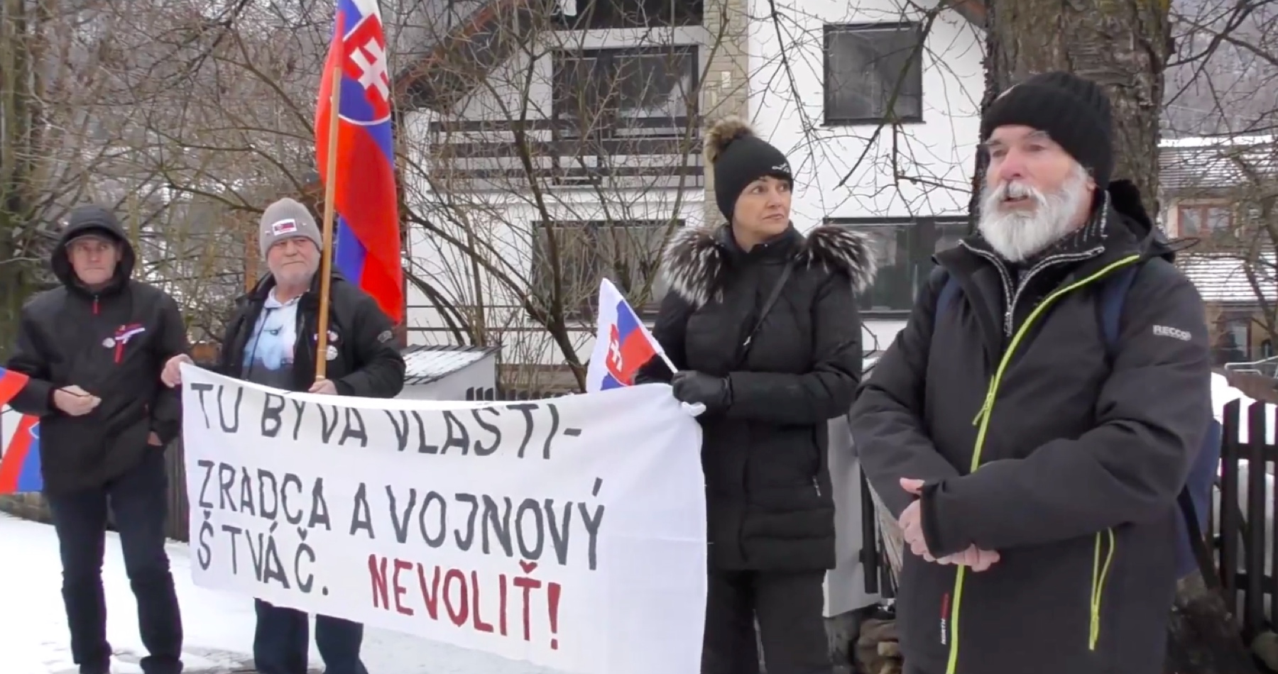 VIDEO: Občania prišli do Terchovej vyjadriť protest proti podpredsedovi parlamentu Laurenčíkovi z SaS pre jeho hlasovanie za okupačnú dohodu s USA a za podnecovanie k vojne s Ruskom: „Tu býva vlastizradca a vojnový štváč!“