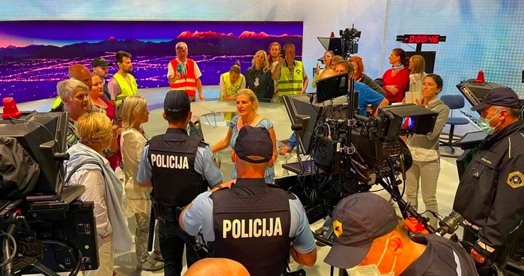 Skupina ľudí odmietajúca oficiálnu propagandu štátu a médií o koronavíruse a odporcovia očkovania vtrhla v piatok večer do sídla verejnoprávneho slovinského telerozhlasu RTVS (Radiotelevizija Slovenija) a pred príchodom polície sa im podarilo dostať do štúdia.