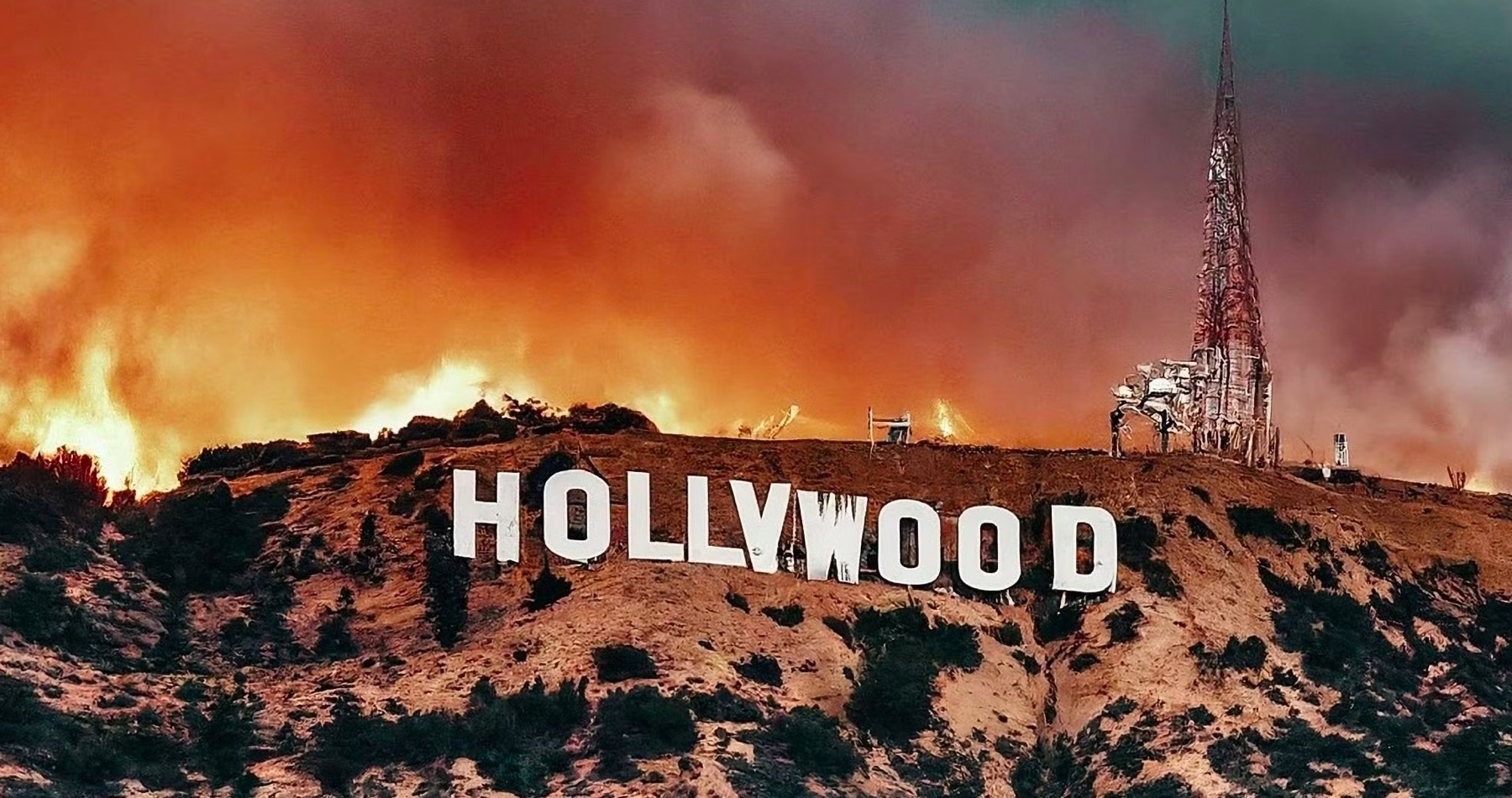 Požiar v Hollywood Hills je pomerne malý, no horí nad slávnou ulicou Hollywood Boulevard a Hollywoodskym chodníkom slávy. Pokiaľ by prekročil diaľnicu 101, mohol by ohroziť aj nápis Hollywood a Griffithovo observatórium.