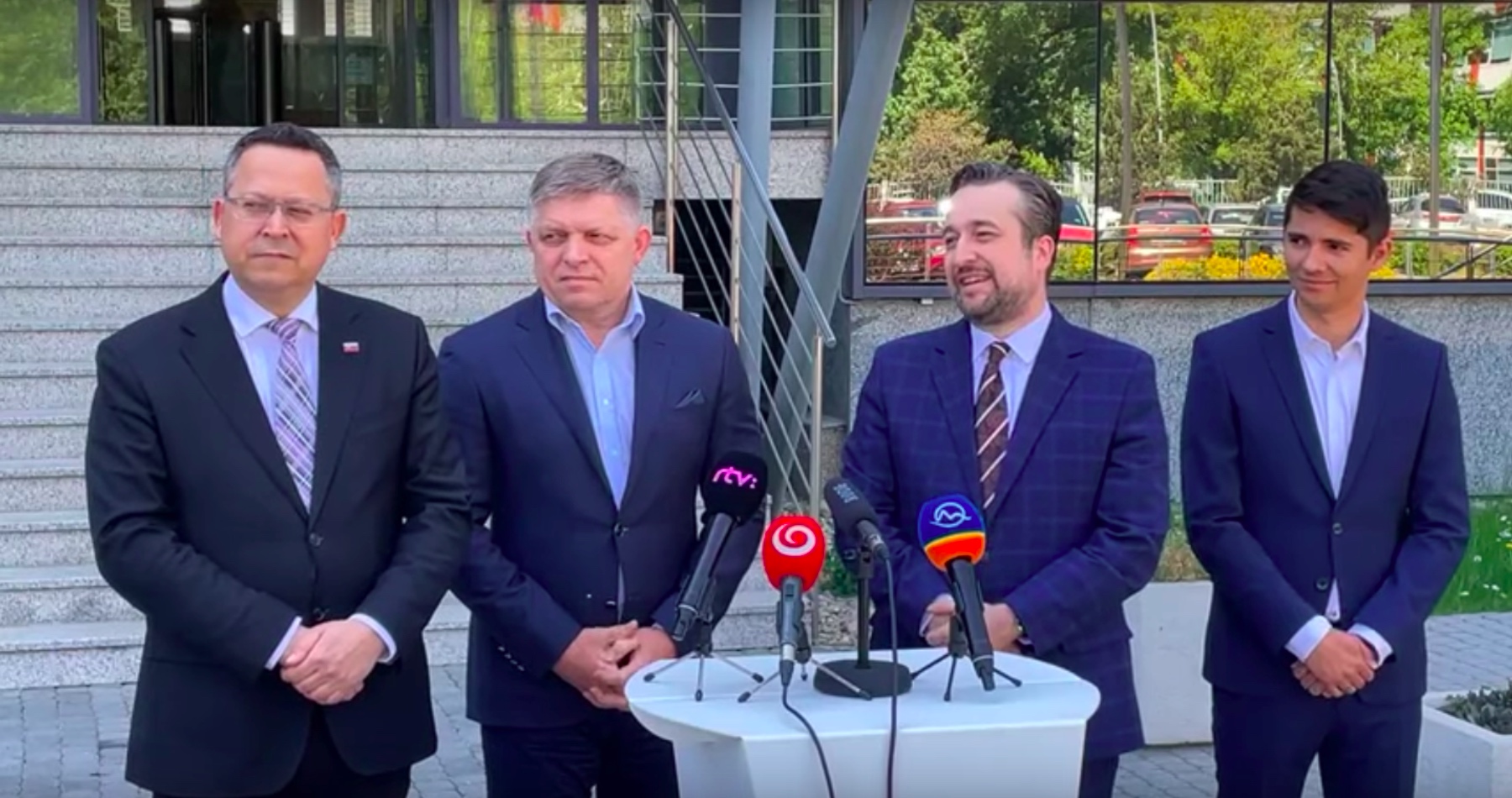 "Prepáčte, len jedna drobnosť, lebo to tu vyzerá nadlho. Nabudúce, keď sa spýtate. Viete, patrí to SPP. Ale dobre, keď ste tu, tak tu páni ostaňte," snažil sa zrejme Sulík naznačiť, že tlačovka Smeru sa koná pred budovou plynárov bez ich povolenia. SPP a Sulíkov rezort sídlia v jednom areáli.