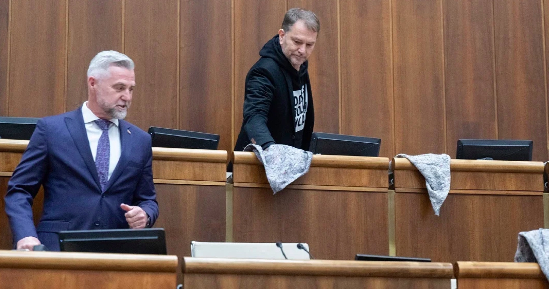 VIDEO: Pacient z Trnavy & spol. vyčíňali v parlamente, keď na miesta poslancov Hlasu rozmiestnili handry. „Ste sa už načisto zbláznili? Môžete sa hanbiť,“ reagoval šokovaný Andrej Danko